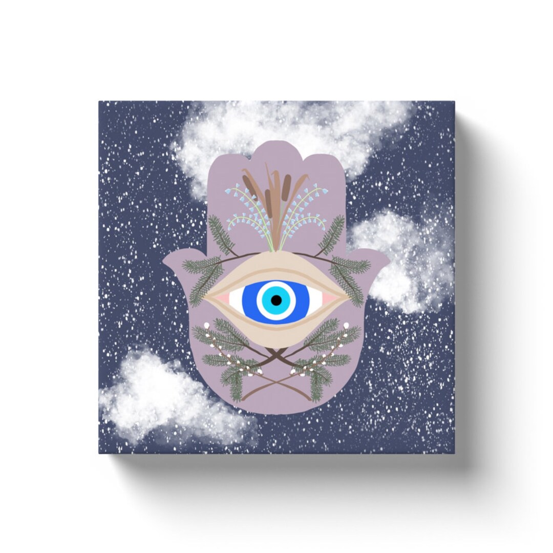 Canvas Wall Art Hamsa Hand Of Fatima Evil Eye Winter Good Luck Etsy Uk